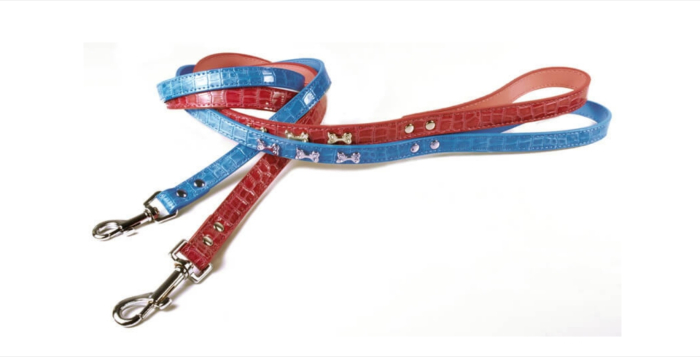 - Lesa este realizata din piele imprimeu crocodil si este ornata cu strasuri in forma de os.